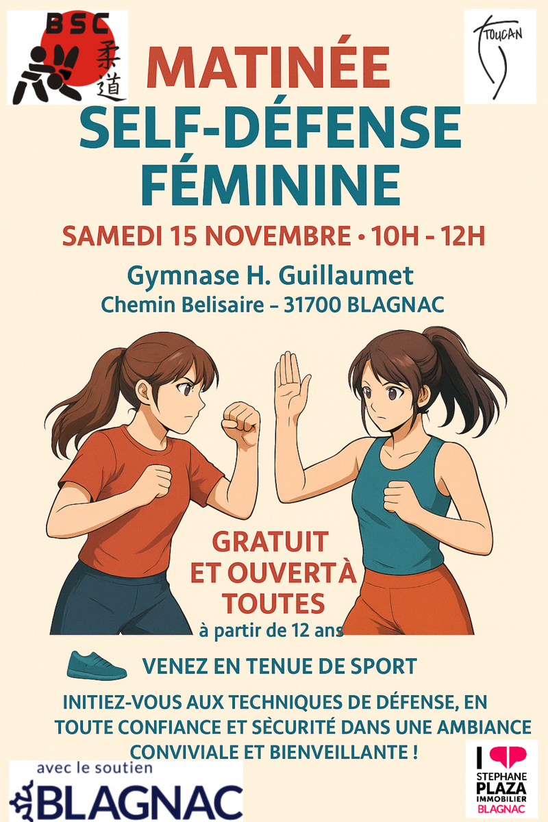 Matinée self-défense samedi 15 novembre de 10h à 12h ouvert aux féminines à partir de 12ans et gratuit !